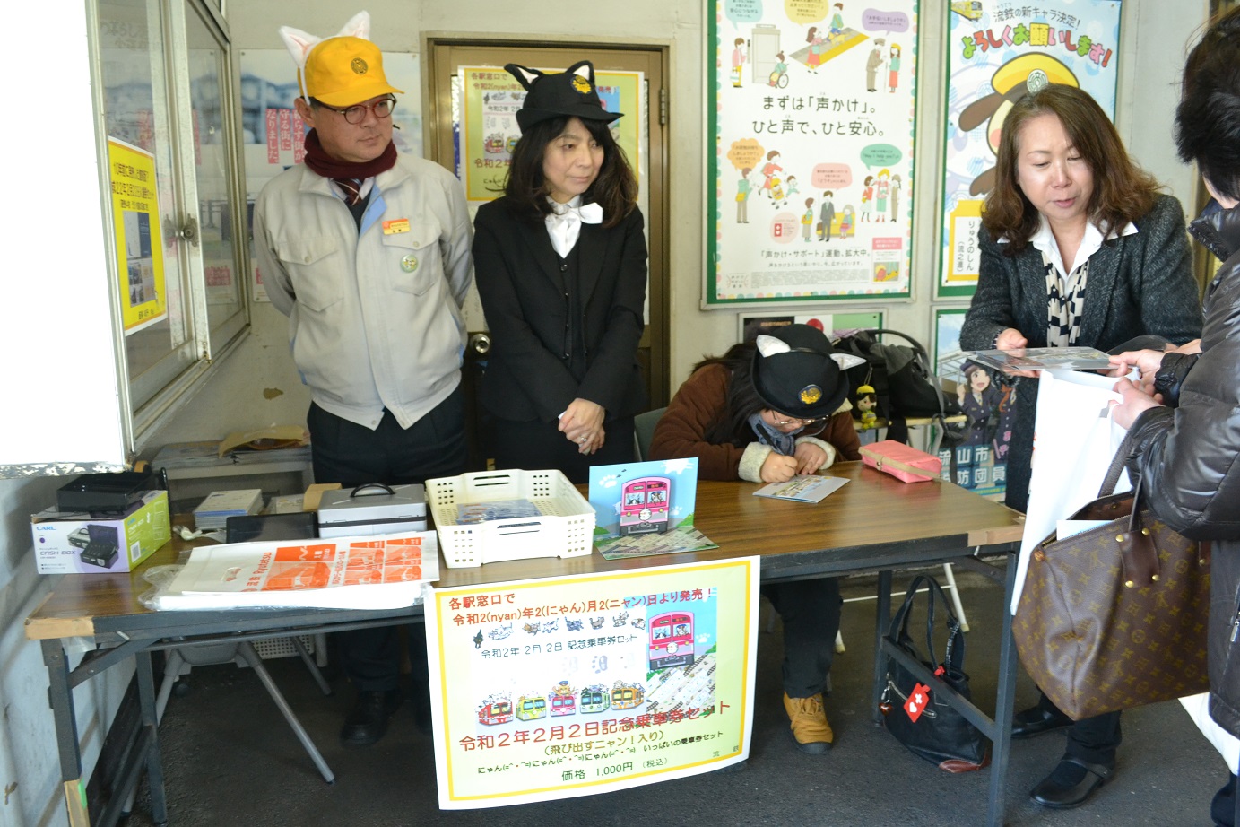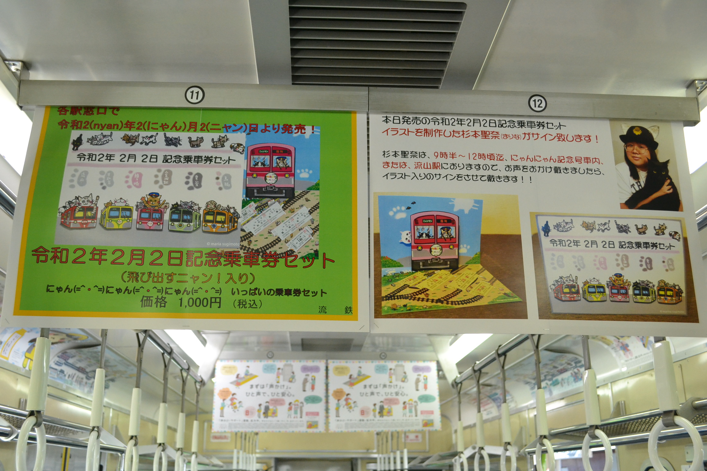 にゃんにゃん記念号の車内には、切符発売の広告に加え、サイン会のお知らせも、掲示して戴いていました。