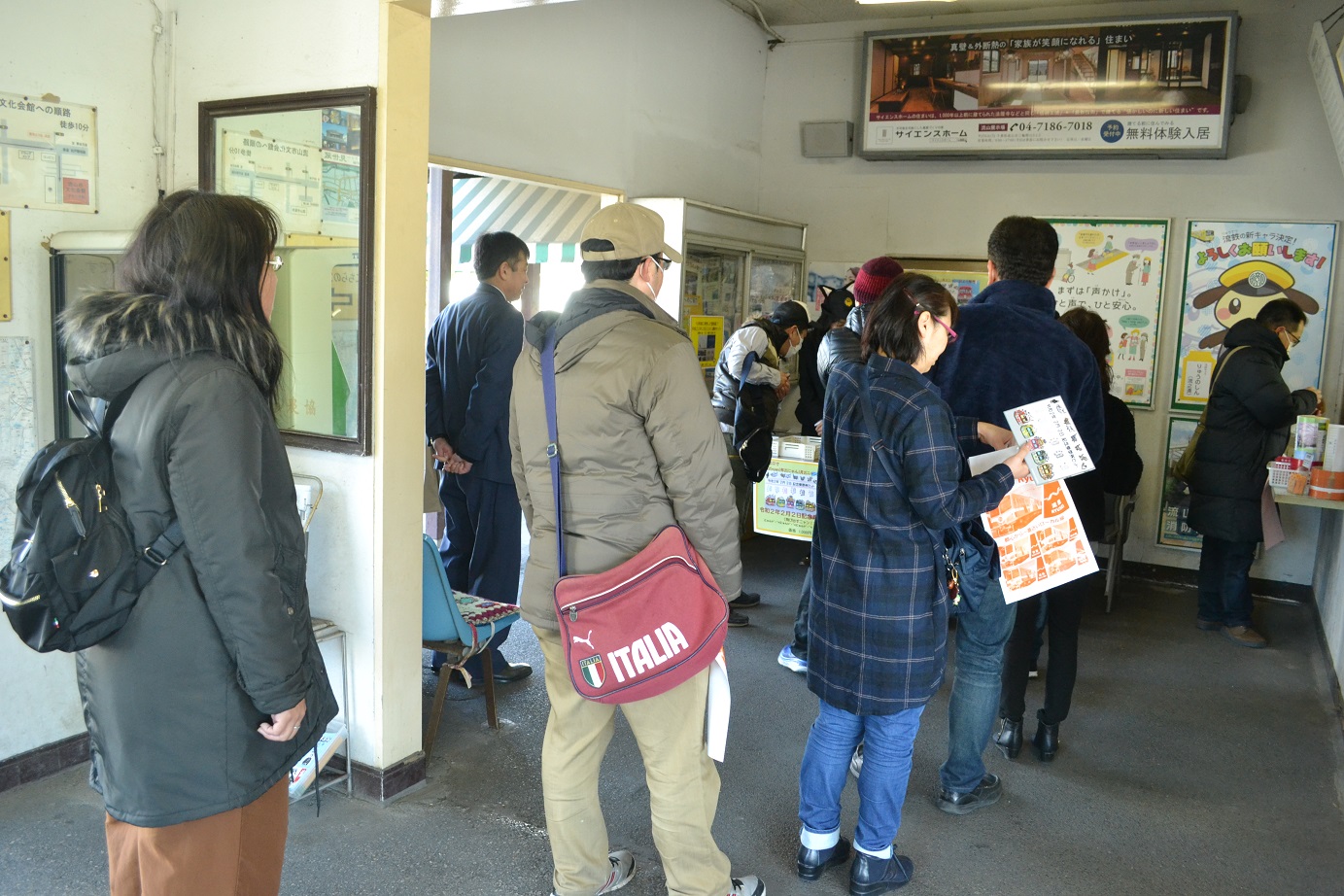 流山駅では、電車が着く度に記念券お買上のお客様が並び、