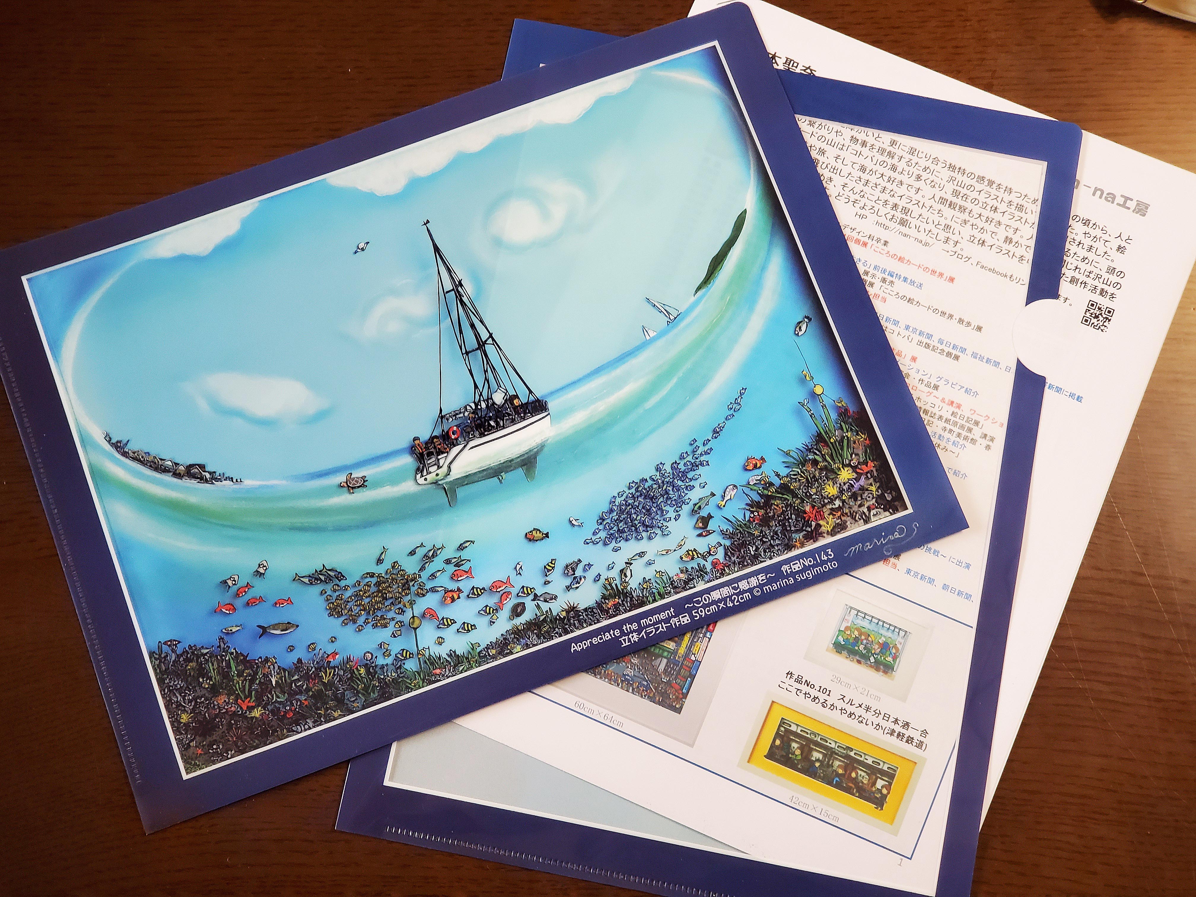 この作品も、「三井アウトレットパーク横浜ベイサイドマリーナ」で常設展示のため、 「この瞬間に感謝を」と共に連作で制作した、最新立体イラスト作品のクリアファイルです。