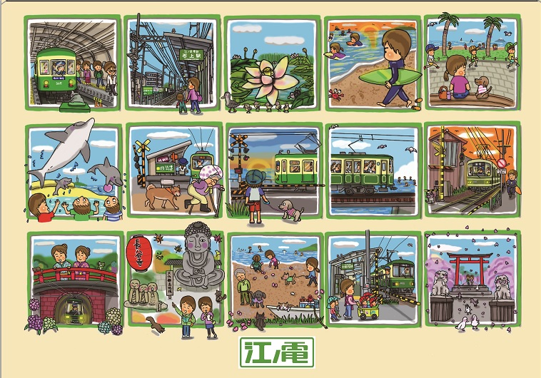 裏表紙には、江ノ電15駅に因んだイラストも描き込まれています。