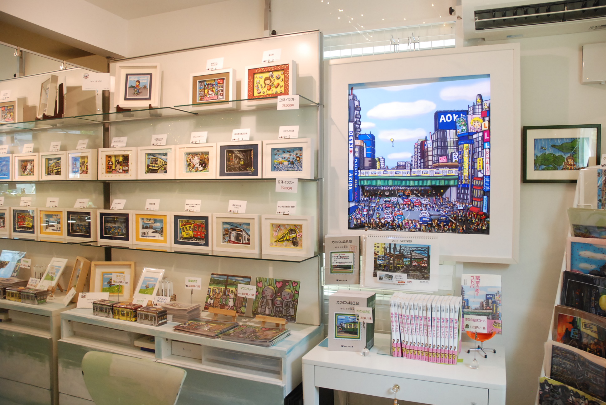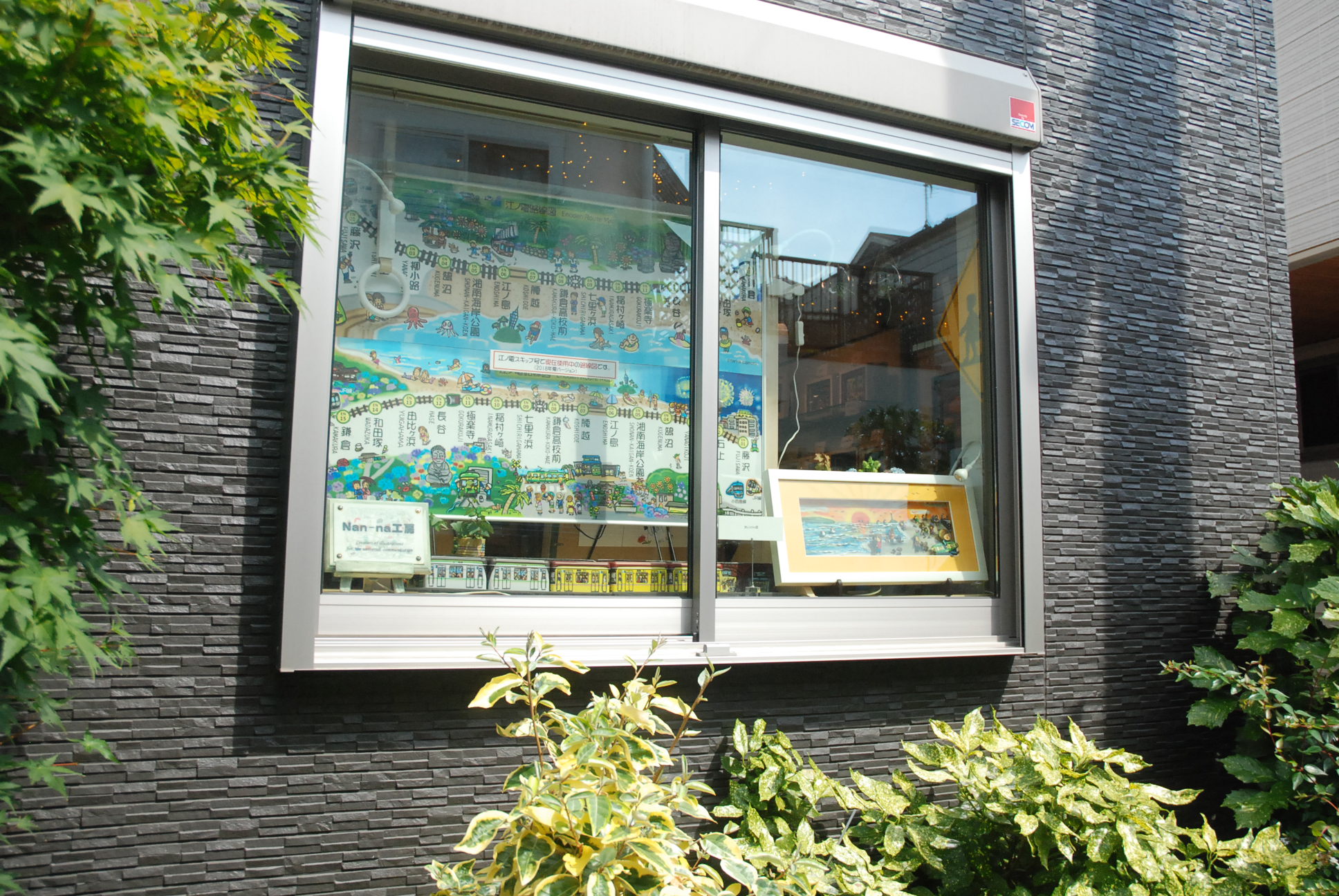 《ミニギャラリーオープンしました》→由比ヶ浜に移転しました。 ニュースリリース Nan-na工房のミニギャラリー、本日オープンしました! この看板が出ている時はオープンしています。 窓には現在江ノ電SKIP号で使われている路線図。 プロジェクションマッピングと、物販コーナー。 オリジナルの立体イラスト原画も販売しています。 ギャラリー入口の、鉄道グッズ展示。