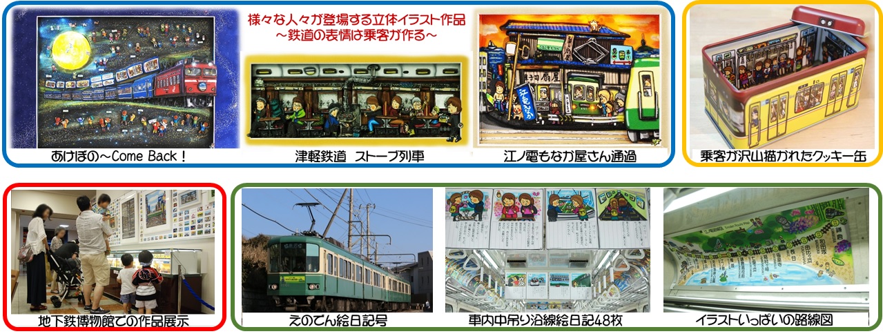 鉄道にまつわる立体イラストの創作や、東京メトロのクッキー缶デザイン、